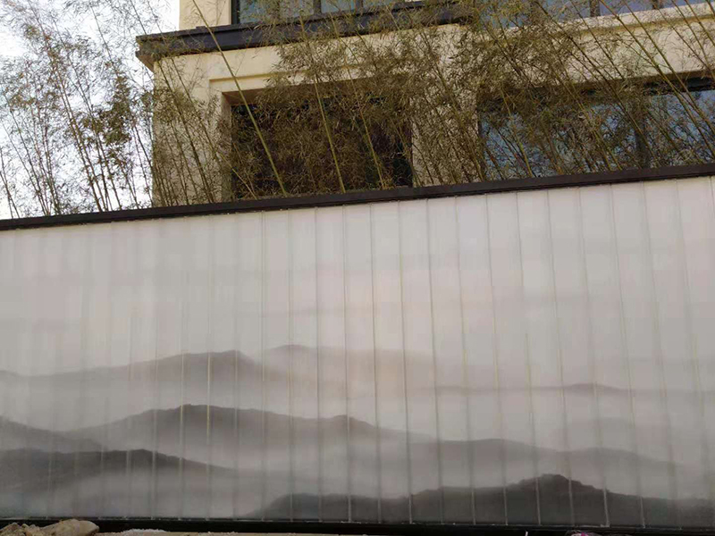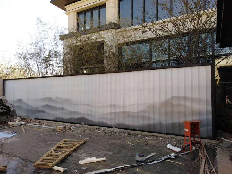 河南鄭州藍光雍錦園背景墻水墨畫U型玻璃項目