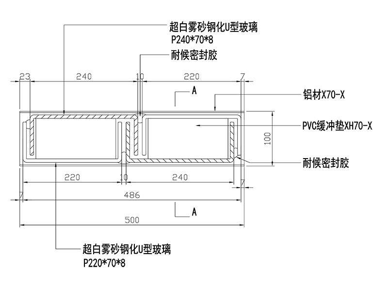 4片加高加厚超白玻鋼化霧砂U型玻璃格柵