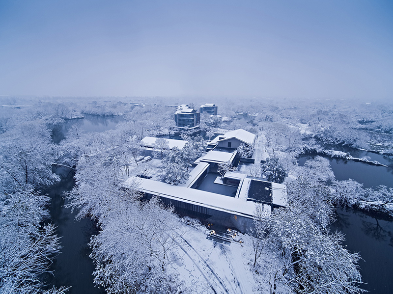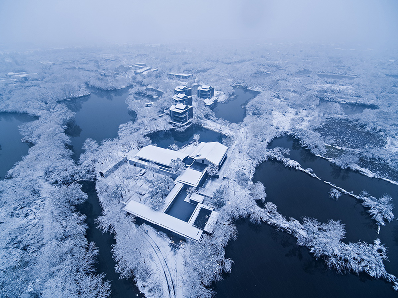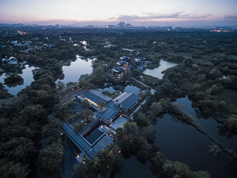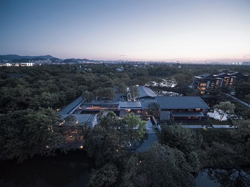 木守西溪位于西溪國家濕地公園西南角龍舌嘴入口的盡端。項(xiàng)目基址南望緩丘山巒,北臨水網(wǎng)平原,依水徑、通陸路,周圍原生植被環(huán)繞,擁有典型的濕地生態(tài)。建筑師試圖通過設(shè)計將西溪濕地“冷、靜、孤、野、幽”的自然美態(tài)呈現(xiàn)給來訪者,以建筑為媒介喚起人與原始自然的共鳴。