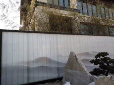 河南鄭州藍(lán)光雍錦園背景墻水墨畫(huà)U型玻璃項(xiàng)目