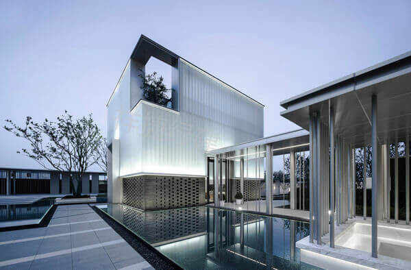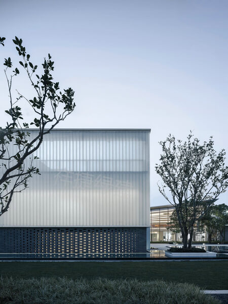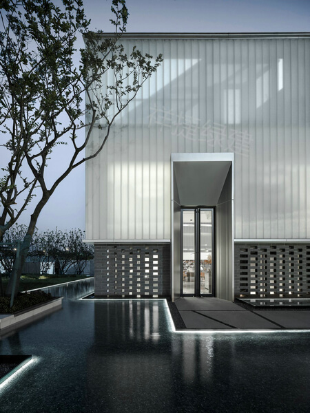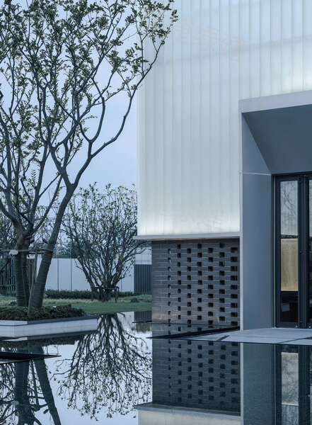 本項目位于吳中太湖新城中心區(qū)域,采用了大面積 “U型玻璃”每一片高達7.6米。其材料特性對于空間外,為一種半透明質(zhì)地,猶如溫潤的玉石,輕撫著每一顆來訪客戶的心。常聽蘇州人談論,“在過去花三分錢去獅子林鉆假山,花二分錢到公園看錦鯉,花五分錢去游一次拙政園…”。灰空間”與“流動性空間”是古典園林的一大特色,而造園手法中,“蜿蜒曲折”、“內(nèi)向與外向”、“看與被看”也許這就是融悅時光售樓處的設計初衷吧。