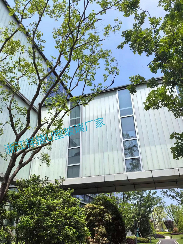 楚江高新電材幕墻工程采購U型玻璃項目,面積2500平,使用超白鋼化外光面內壓花蒙砂U型玻璃