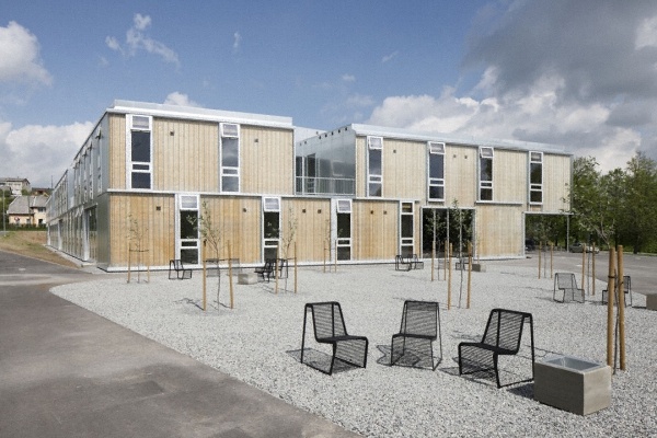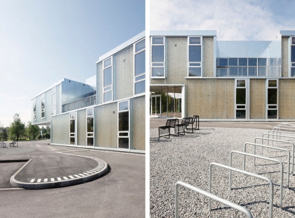 音樂(lè)和藝術(shù)學(xué)校的外立面是木墻和U型玻璃共同組成的雙層可呼吸式外墻系統(tǒng)。