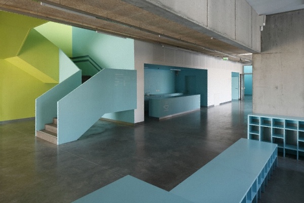 并實(shí)現(xiàn)兩所學(xué)校之間更多的交互。綠色室內(nèi)代表著音樂(lè)學(xué)校,藍(lán)色室內(nèi)代表著藝術(shù)學(xué)校。