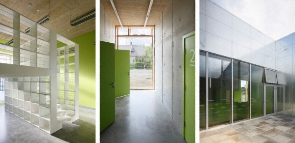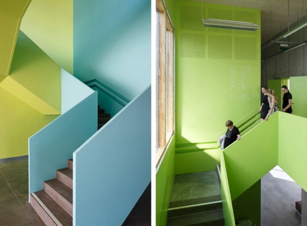 被動(dòng)式能源調(diào)控。此外建筑師發(fā)現(xiàn)在教育機(jī)構(gòu)很多主要材料都彰顯自己色彩和肌理的本