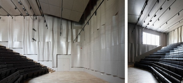 大的音樂(lè)練習(xí)廳,一側(cè)的采光口開向內(nèi)部的日光庭院。